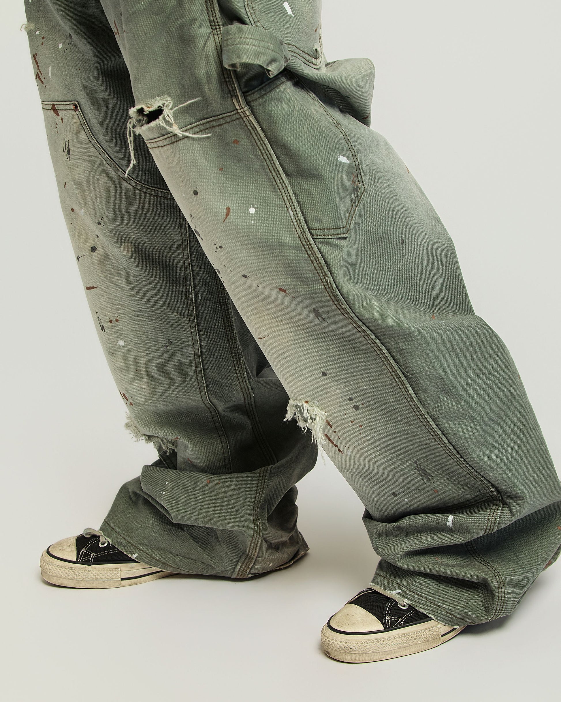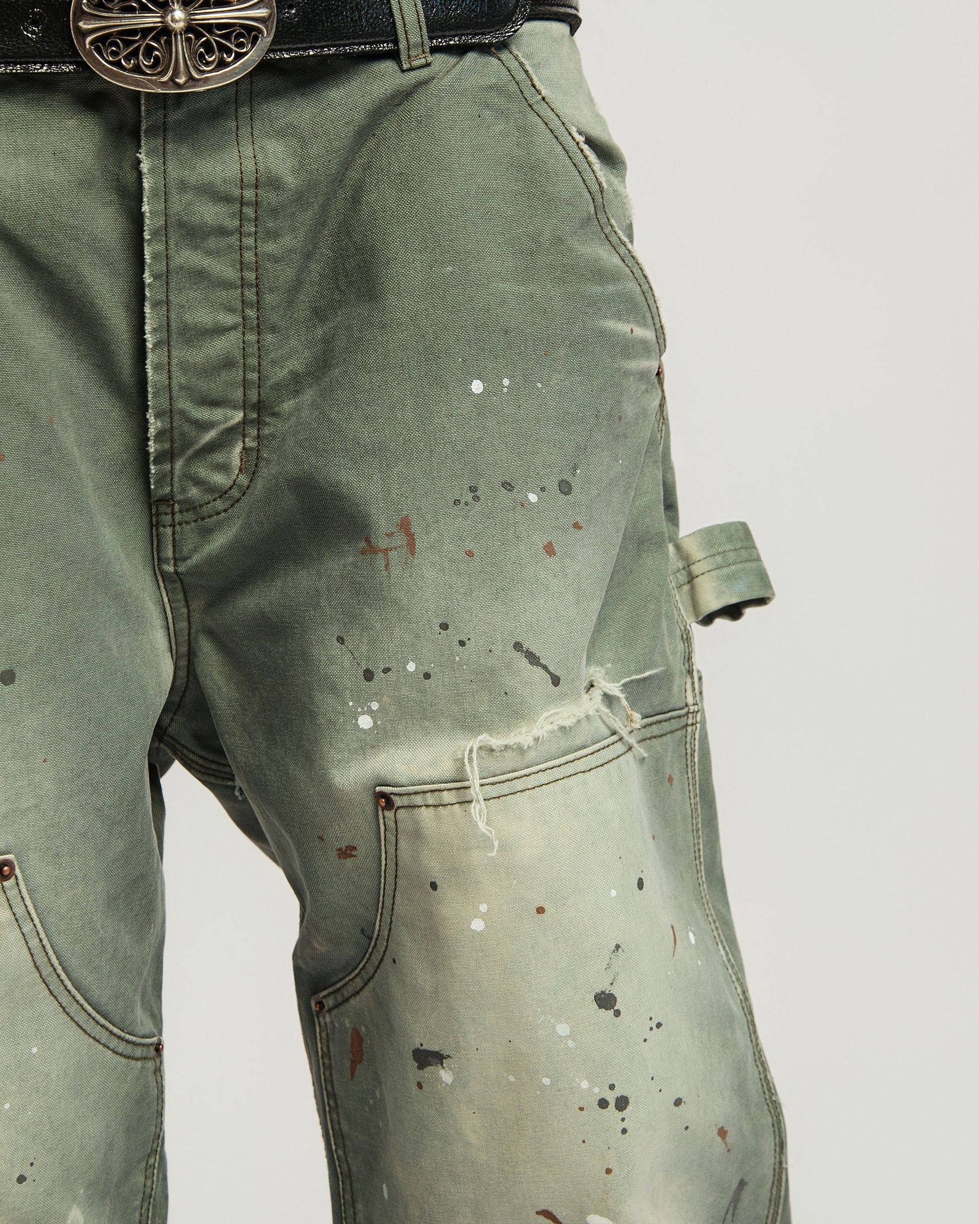 Cut from heavy 14.5 oz duck canvas, these double knees go through potassium wash, enzyme treatment, and controlled distressing to create depth, character, and a naturally worn finish.